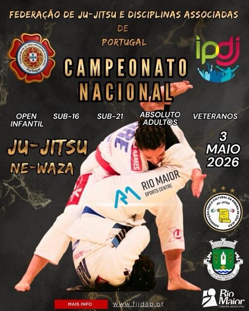 Realiza-se no Pavilhão Polidesportivo de Rio Maior em 03.05.2026 o Campeonato Nacional em Jiu-Jitsu Ne-waza para os escalões Sub-16, Sub-21 e Veteranos em categorias de peso e Adultos Absoluto.
