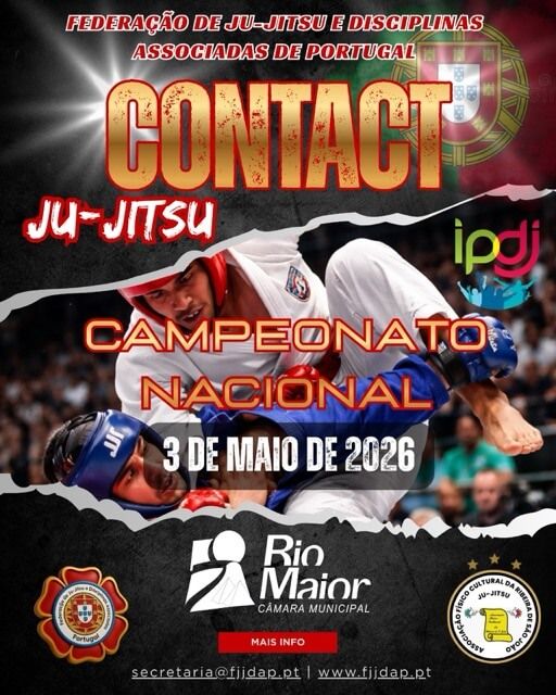Realiza-se no Pavilhão Polidesportivo de Rio Maior em 03.05.2026 o Campeonato Nacional em Ju-Jitsu Contact para os escalões Sub-21, Adultos e Veteranos em categorias de peso.